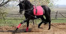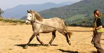 Le cheval évolue sur un cercle autour du cavalier. Le cheval étant libre de ses mouvements, il peut s'exprimer et le cavalier est à même d'intervenir par son langage corporel.