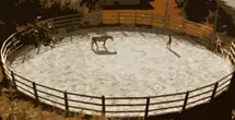 Travail en liberté ou la rencontre entre le cheval et son cavalier est favorisé par la forme circulaire de l'enclos et la taille restreinte de celle-ci.