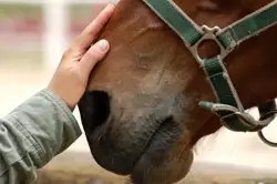 Le cavalier au sol avec son cheval lui apprend à céder à différentes pressions sur son corps, que ce soit par l'intermédiaire du mors, du caveçon, du licol éthologique ou de la badine.